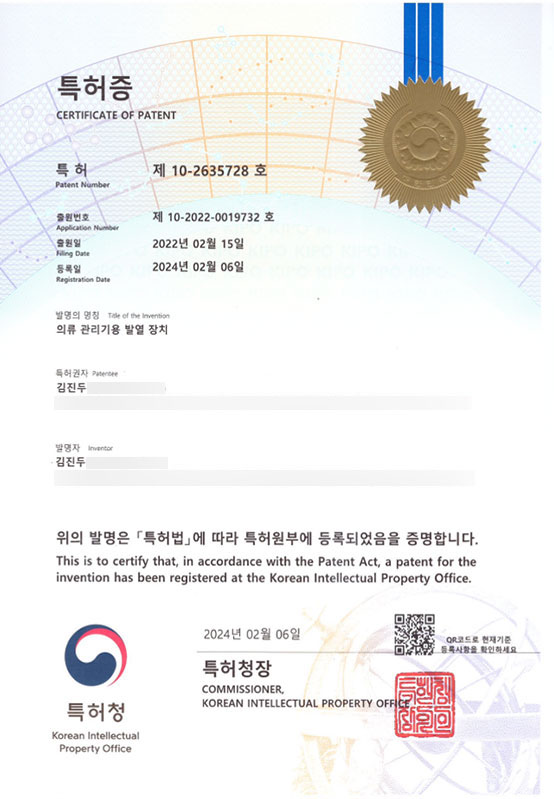 특허증 특허증 (제 10-2635728호) 페이지 정보 작성자 DSW 댓글 0건 조회 49회 작성일 24-07-15 16:09 목록 본문 특허증 (제 10-2635728호) 이전글특허증 (제 10-2635739호) 24.07.15 다음글출원사실증명원 24.07.15 댓글 0 댓글목록 등록된 댓글이 없습니다.