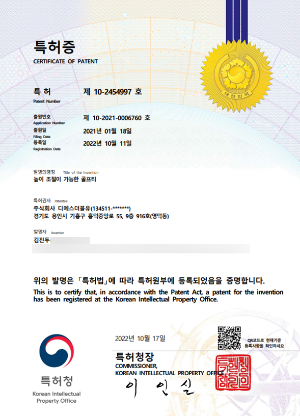 특허증 특허증 (제 10-2454997호) 페이지 정보 작성자 DSW 댓글 0건 조회 62회 작성일 24-07-15 16:16 목록 본문 특허증 (제 10-2454997호) 이전글연구개발전담부서 인정서 24.07.15 다음글특허증 (제 10-2635730호) 24.07.15 댓글 0 댓글목록 등록된 댓글이 없습니다.